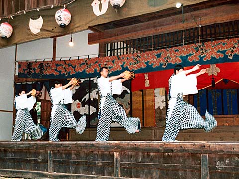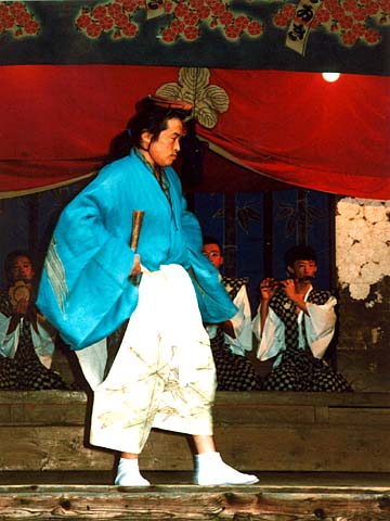 いる扇に降神する。 扇は神の依代で面をつけることが神懸りの方法である。