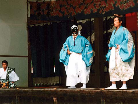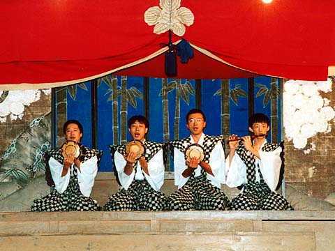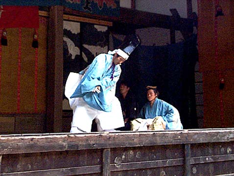 三番叟退場し、つづいて囃子方が二重台をおり、舞台前面に進み一礼し退場する。